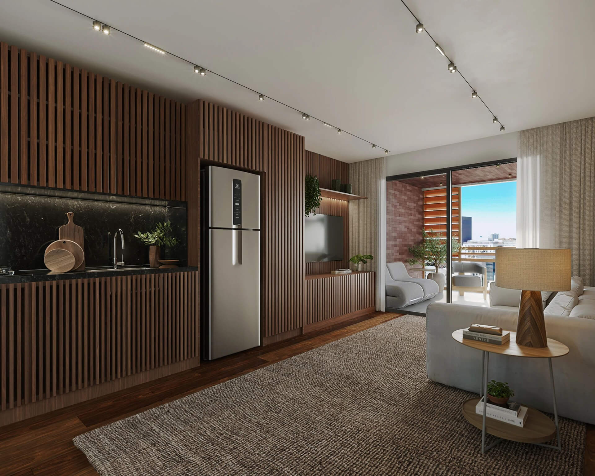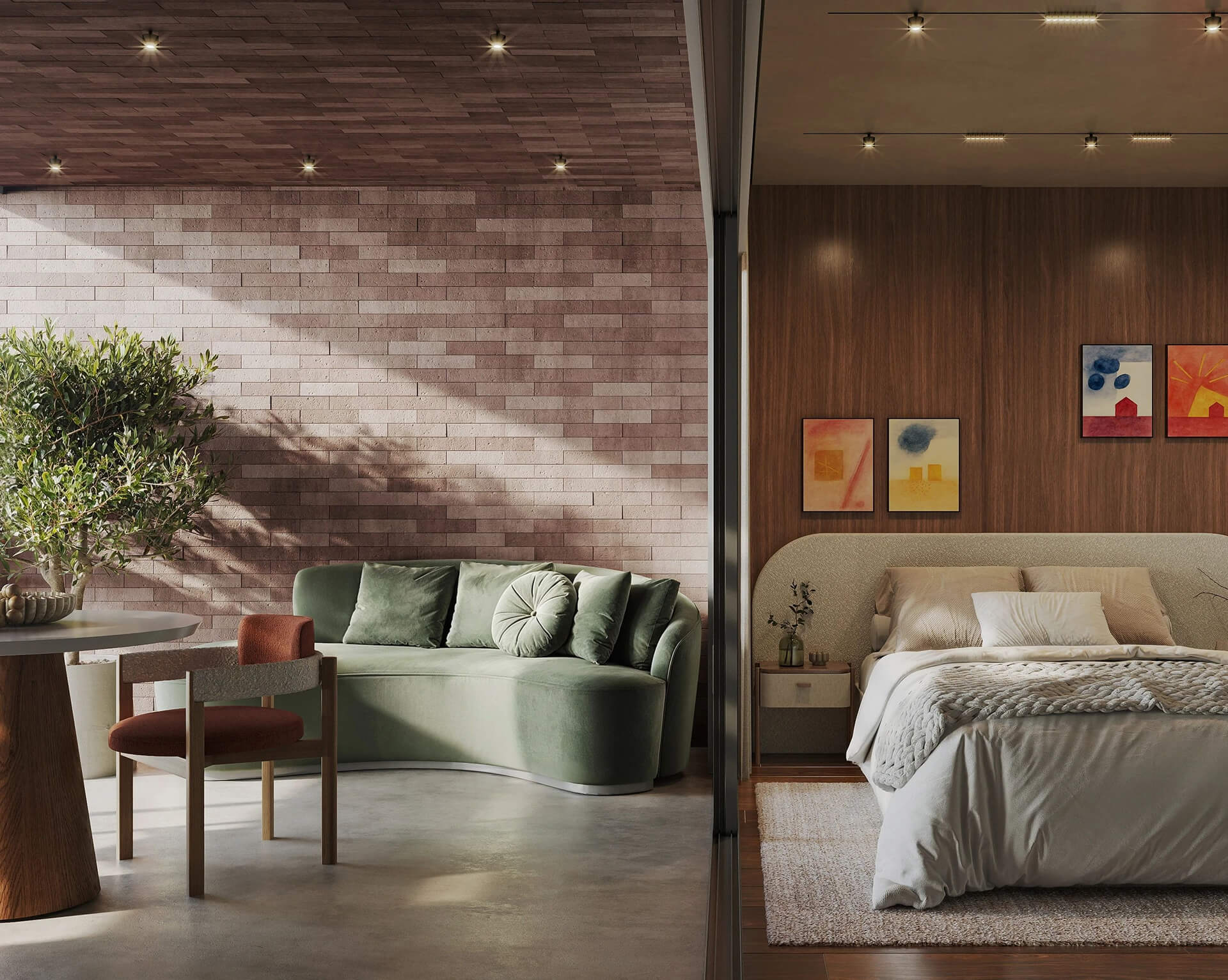 Um ponto de encontro entre arquitetura, arte e tempo. A madeira natural, as texturas suaves e a iluminação pontual criam uma atmosfera acolhedora e contemporânea. Um verdadeiro refúgio urbano.